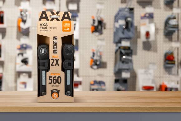 Speziell für E-Bikes hat Axa das „Fold Ultra“ entwickelt. Es wird mit der neu gestalteten Klickhalterung geliefert. Mit einem Knopfdruck öffnet sich der Halter und das Schloss kann einfach herausgenommen werden. Beim erneuten Einsetzen des Schlosses in die Halterung, klickt man erneut auf den Halter und das Schloss ist sicher aufbewahrt. Der Halter kann leicht am Flaschenhalter montiert werden. Alternativ kann der Halter mit den zwei mitgelieferten Montagebändern auch am Fahrradrahmen befestigt werden. Die Gummi-Ummantelung der Stäbe, schützen den Lack vor Schäden. Außerdem kann der Schloss-Kopf um 360° Grad gedreht werden, was beim Abschließen komfortabel ist. Das „Fold Ultra 90“ wurde bei einem Test der Stiftung Warentest im März 2023 mit der Note Gut (1,9) bewertet.