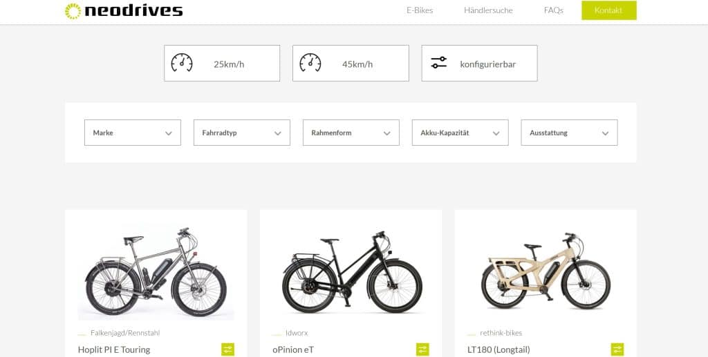 Neodrives hat eine eigene Onlineplattform zur Modellrecherche vorgestellt. Der neue "Bikefinder" bündelt alle E-Bikes, die mit dem Neodrives-Antriebssystem ausgestattet sind, und führt Nutzerinnen und Nutzer per Filterfunktion durch die Auswahl.