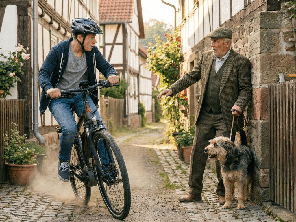 Ein Beinahe-Unfall auf einem schmalen Fußweg wirft Fragen zur Rücksichtnahme im Umgang mit Pedelecs auf. In einer Dorfgemeinde kam es kürzlich zu einer gefährlichen Situation zwischen einem Fußgänger mit Hund und einem jugendlichen Fahrer eines elektrisch unterstützten Mountainbikes (Pedelec). Nur durch eine abrupte Vollbremsung konnte ein Zusammenstoß verhindert werden.