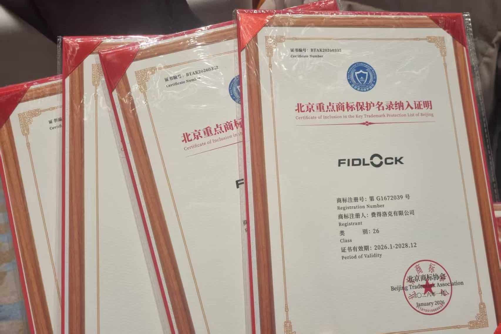 Die Fidlock GmbH ist mit ihren Wort- und Wortbildmarken in die Beijing Key Trademark Protection List aufgenommen worden. Vorgestellt wurde die Ausgabe 2025 der Liste am 16. Januar 2026 im Rahmen der First Beijing Trademark Brand Ceremony. Das Unternehmen nahm als Markeninhaber an der Veranstaltung teil und wurde dort offiziell in den Schutzmechanismus aufgenommen.